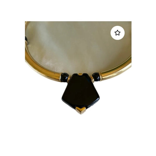 80's Art Deco Style Gold Tubular Necklace with Black Cabochon Choker gift