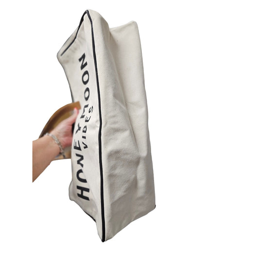 "Honeymoon Vibes" Canvas White Tote with Leather Handles and Blue