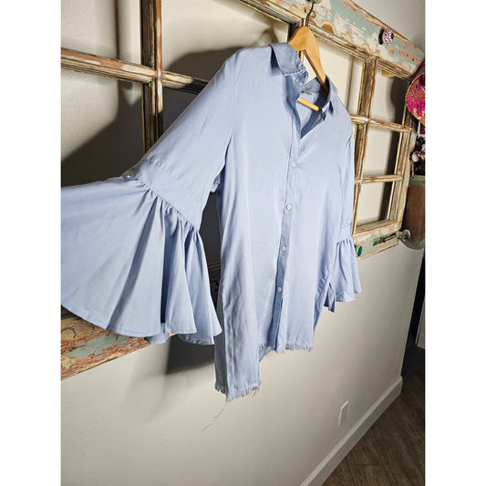 Marc New York Collared Button Up Blue Top 3/4 Bell Sleeves Size Medium