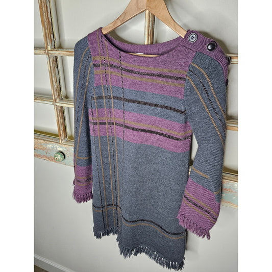 Nanette Lepore Wool Sweater Dress W/ Bell Sleeves Fringe Ladies Size Small