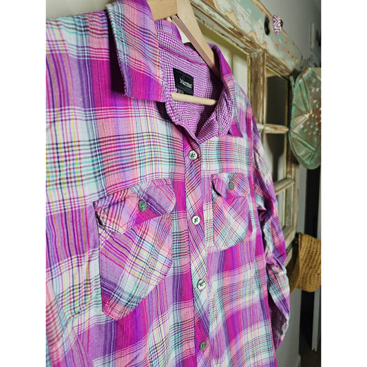 Marmot Magenta Plaid Button Up Long Sleeve Top Ladies size Large