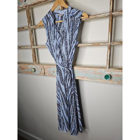 Nanette Lepore Blue Metallic Floral Sleeveless Shear Dress Size 6