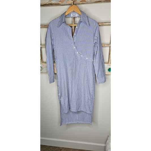 Matilda Navy & White Oxford Button Down High Low V-back Dress size 4