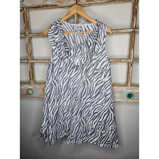 Match Point Linen Animal Print Zebra Tunic Sleeveless Cowl Neck Ladies size Small