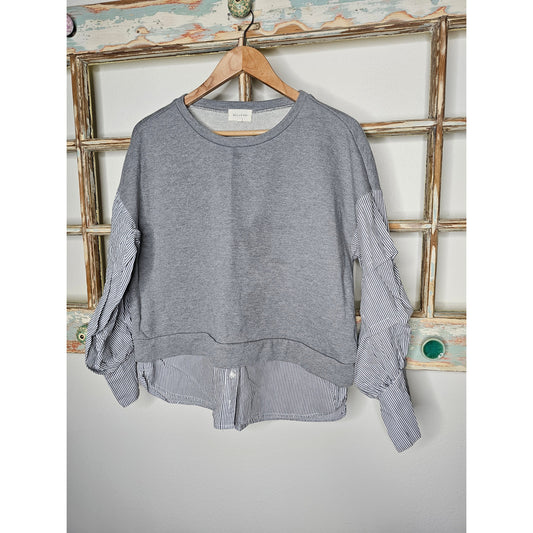 Mello Day Rushed Striped Sleeve W/ Grey Sweater 2PC Ladies size large