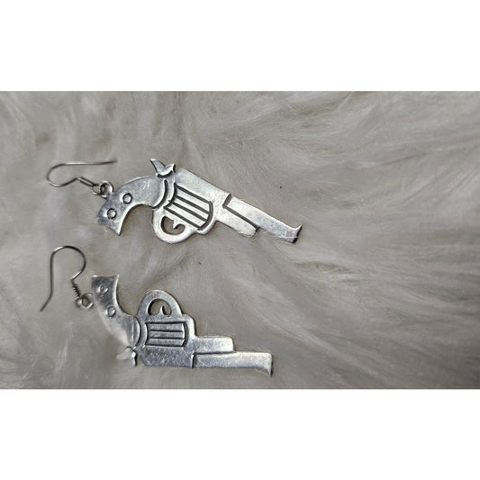 Mexico 925 large Silver Revolver Earrings with Shepherd Hook back 2" X 1"