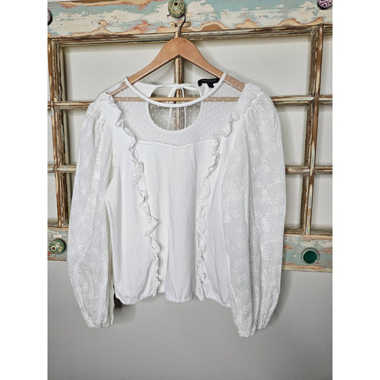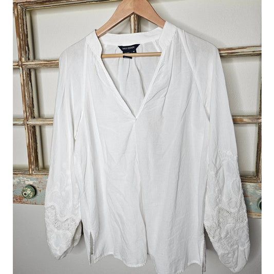 Max Edition White V-neck pullover embroidered ladies Medium blouse