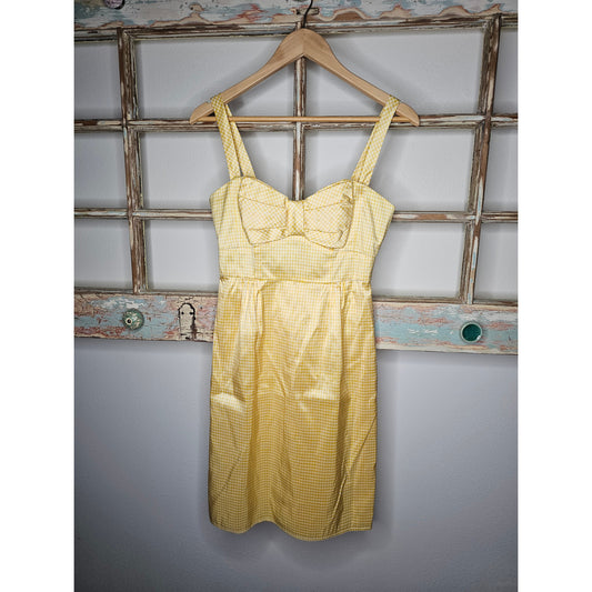 Nanette Lapore 100% Silk Yellow Gingham Bow Dress Size 2