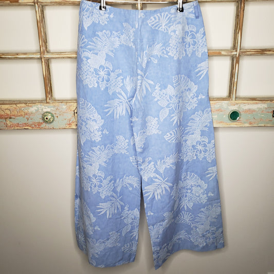 Metro Style Linen wide leg pants with floral embroidery size 12