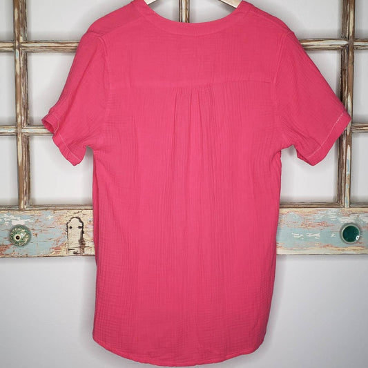 Mote NEW Hot Pink gauzy short sleeve lightweight top size large