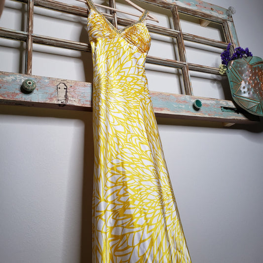 Morgan & C Yellow and White Dress with Crystal Neckline size 1/2