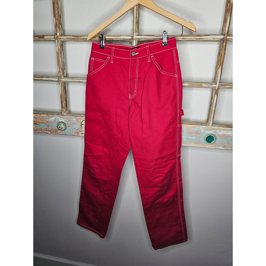 NWOT Dickies Red Carpenter Pants w/ white contrast stitch Ladies size 1 / 25