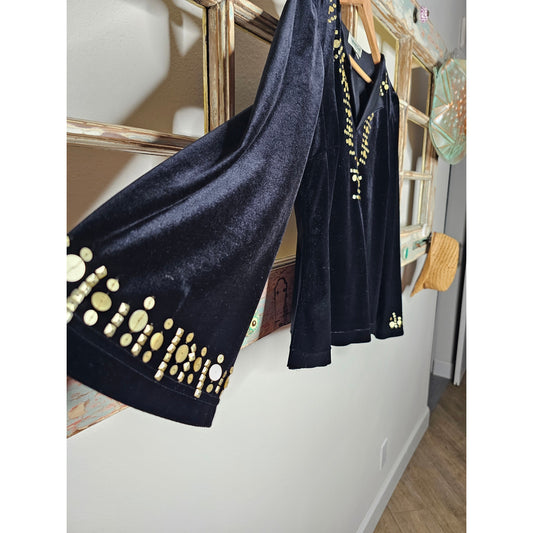 NWOT Coldwater Creek Black Velour V-Neckline Bell Sleeves Gold accents size 12