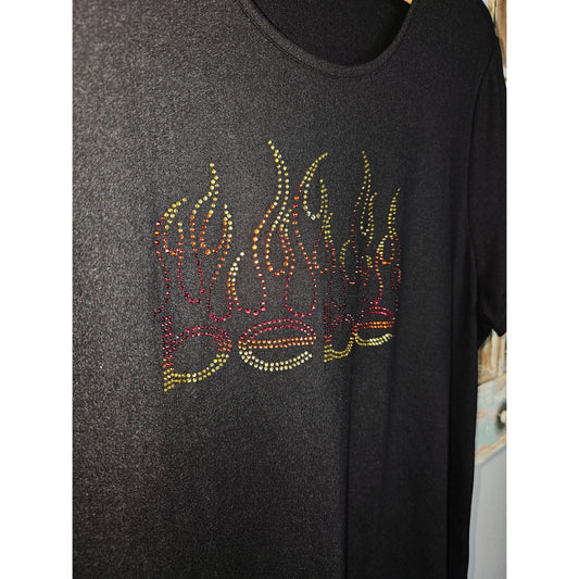 NWOT BeBe Black Tee Dress With Flame Fire Bling Ladies size 2X