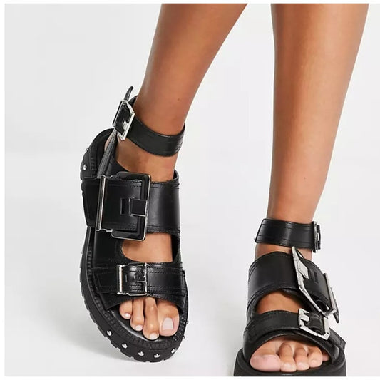 NWB Asos Finchley Premium Leather Chunky Flat Sandal with Buckles Size 6