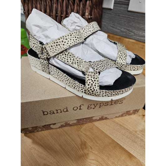 NWB Band Of Gypsies Women Newport Black/White Cow Hair Sandal Size 6