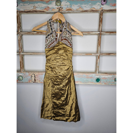 Nicole Miller Collection 100% Silk Ruched Mini with Halter top size 2