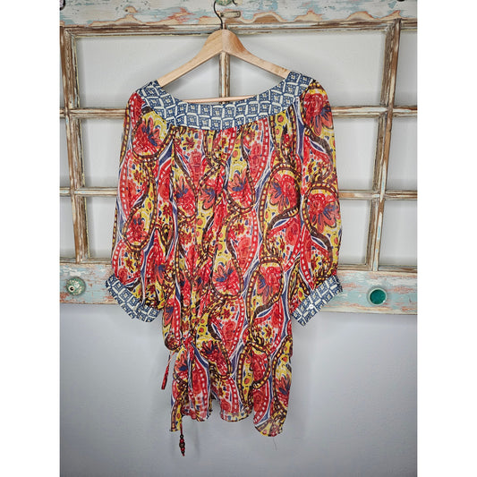 Nine West Vibrant Sheer Drawstring Scoop neck blouse size 2X