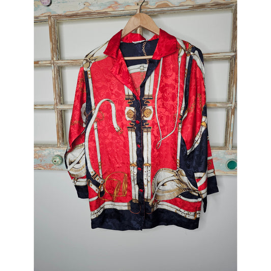 Vintage Equestrian Red/White/Blue Button Up Ladies Small Blouse