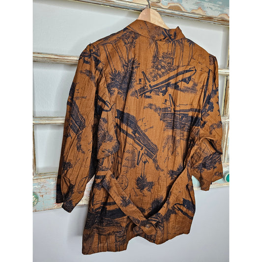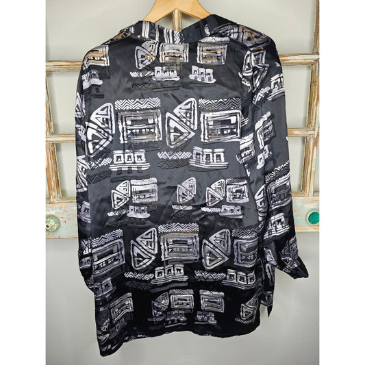 Vintage Chicos Design Silk Blend Asian Inspired Abstract Button Up size 1/ Small