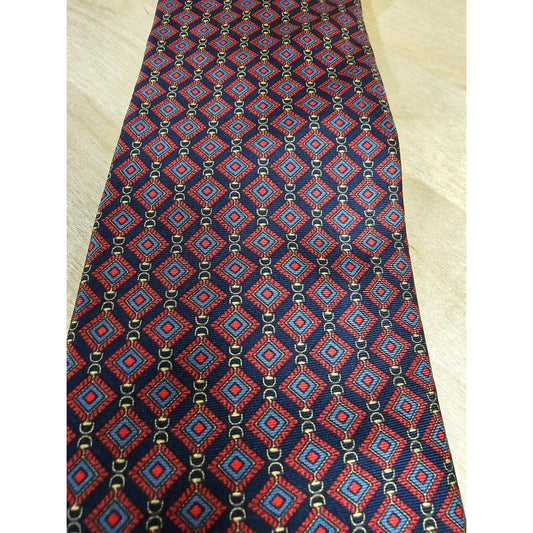 Vintage Christian Dior Monsieur Silk Tie Red/Blue W/ Bridle 3.5" Widest