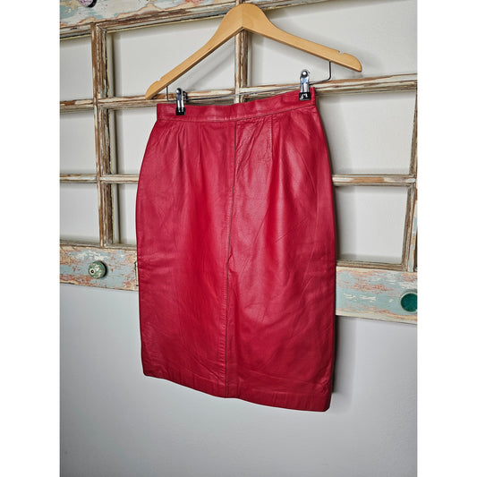 Vintage Donna Pelle Red Leather Pencil Skirt Ladies size 6