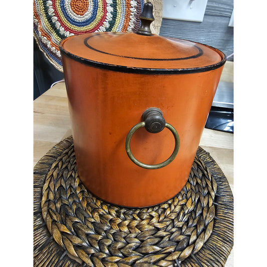 Vintage Cinnabar orange With black Wash/Trim Ice bucket Brass accents