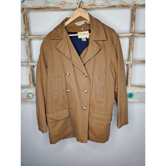 Vintage Eddie Bauer Ladies Khaki Peacoat with Wool removable Lining size Large