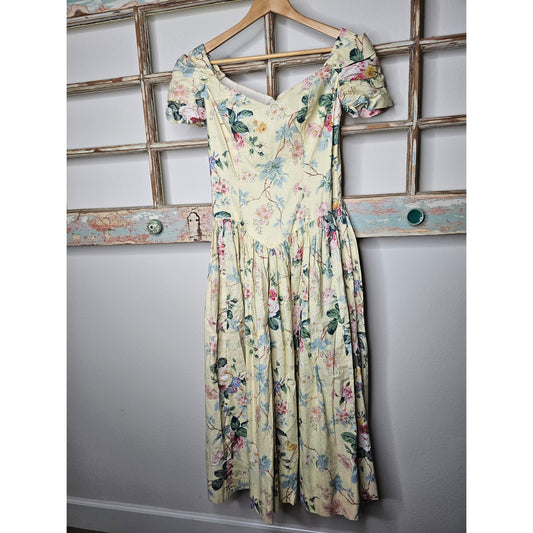 Vintage Cottage Core Floral Off The Shoulder Midi Size Small