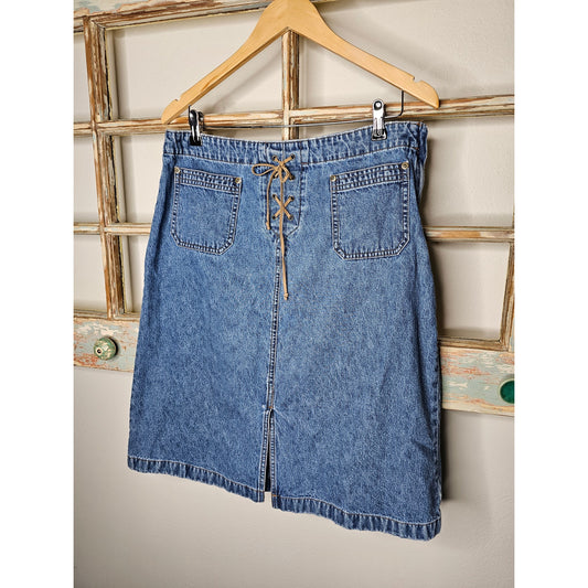 Vintage Covington Denim Lace Up Front Ladies size 16 front/back pockets