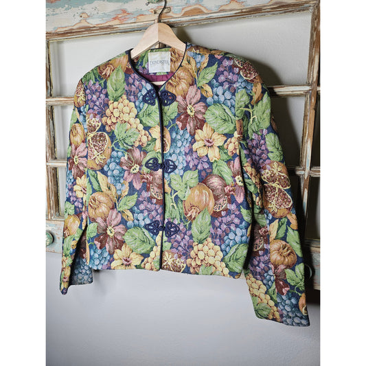 Vintage Don Caster 80's Fruit Brocade Cropped Blazer Ladies size Medium