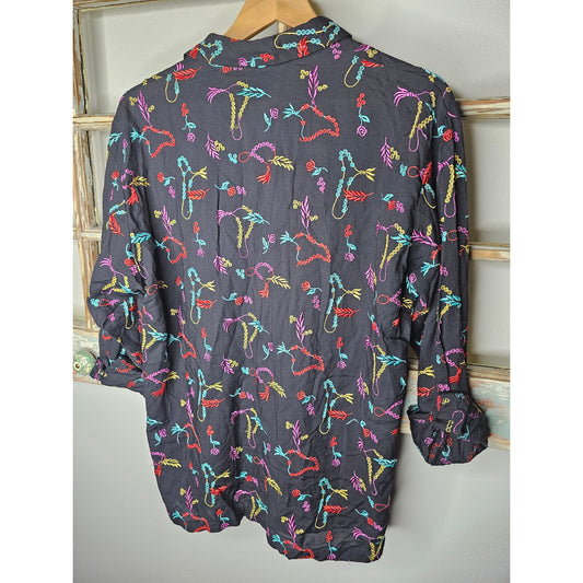Vintage Diane Von Furstenberg NY Paris Embroidered Button Up size Large