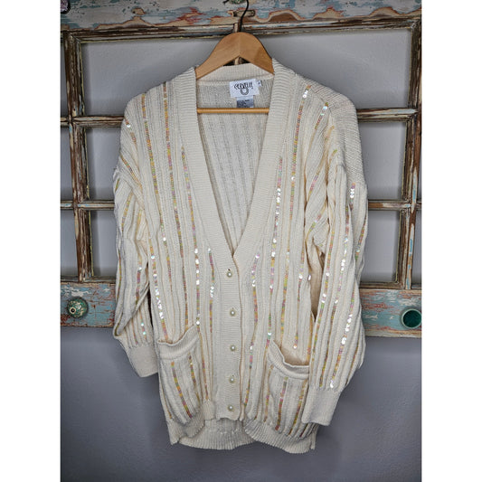 Vintage Cervellie Cream with Sequence and pearls Ladies size Medium