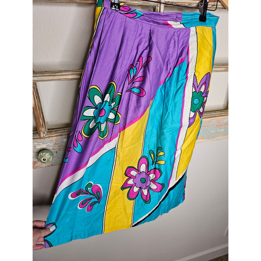 Vintage Colorful Floral 60's Retro Vibe Skirt by Sophisticates Ladies size 12