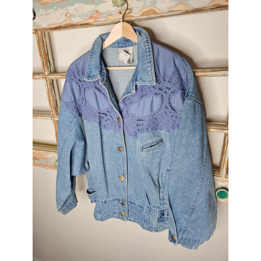 Vintage Denim Jacket By Together With Lace Dolman Sleeves Ladies Size XL