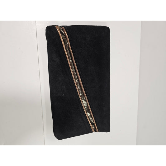 Vintage Clutch Black Suede with metal zipper and Copper strap