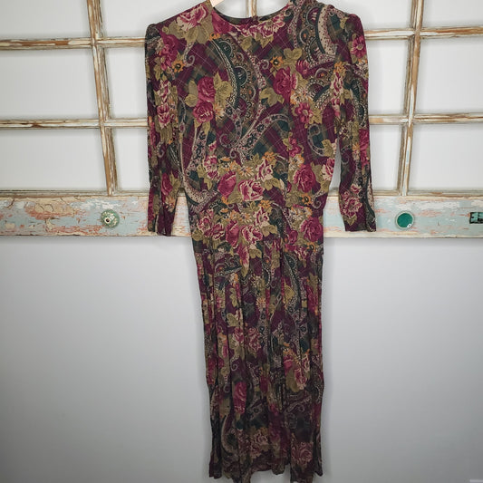 Vintage E.D. Michaels Floral Long Sleeve Midi Dress Ladies Size Large