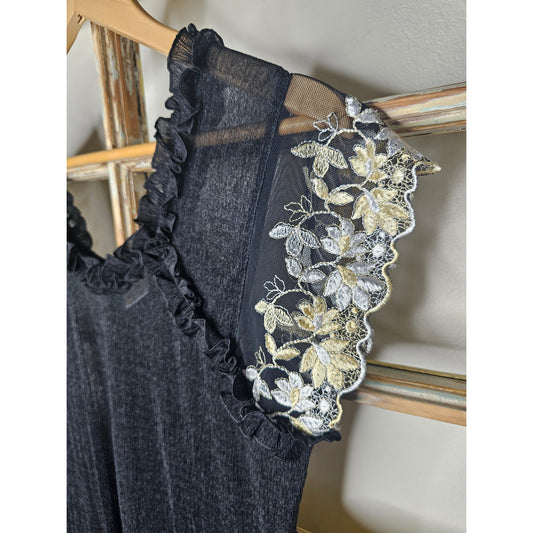 Vintage Nightlady Black Sheer Full Length Nightgown / Dress size Small