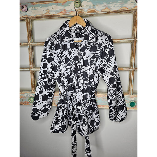 Vintage Lined Black & White Belted Jacket with pockets Ladies size Large