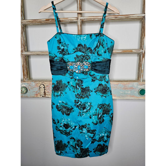 Vintage Marciano Turquoise Floral Print Mini Dress Ladies size Small
