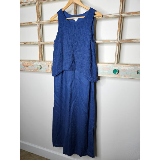 Vintage Linen Pure Jill Blue Midi Sleeveless Dress Ladies Size Small