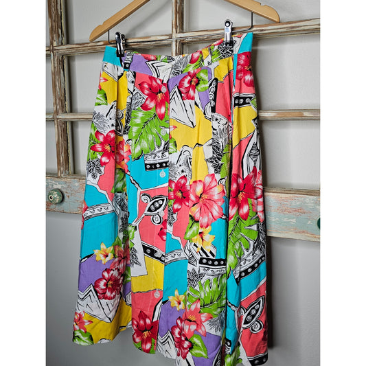 Vintage Novelty Print 80's SK & Company Pleated Skirt Size 29" waist