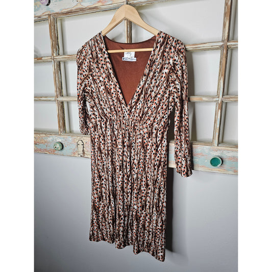 Vintage Milly Lined Mini Dress In a Brown Retro Print Size Medium