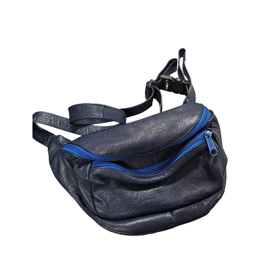 Vintage Navy-Blue Leather Adjustable Fanny Pack With Royal Blue Zippers