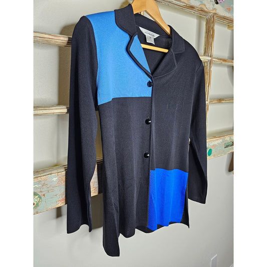Vintage Misook Color Block blue/black Button Up Jacket/Blazer Size XS