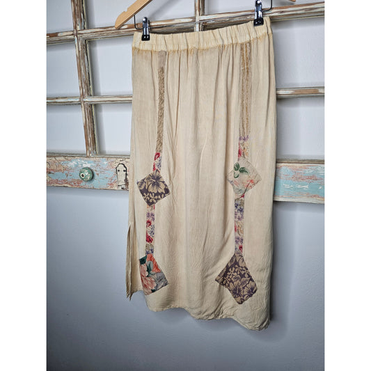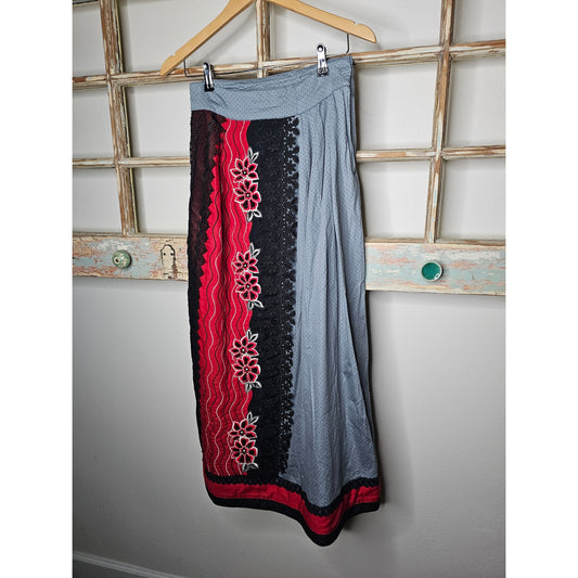Vintage Maxi Faux Wrap Skirt W/ Lace & Embroidery Size 28"