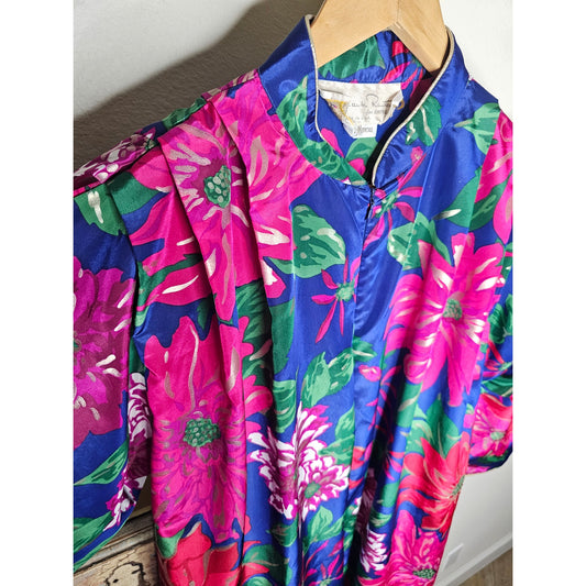Vintage Oscar De La Renta Vibrant Floral Kaftan Dress Front Zip Ladies Medium