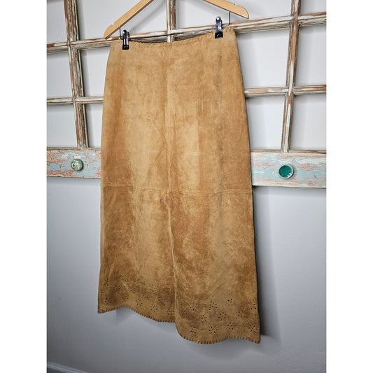 Vintage Margaret Godfrey Sued Leather Maxi Skirt ladies size 10