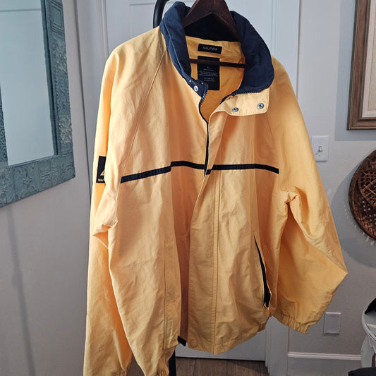 Vintage Nautica Gold/Blue Zip Up Wind Breaker Hidden Hood Mens Size XL