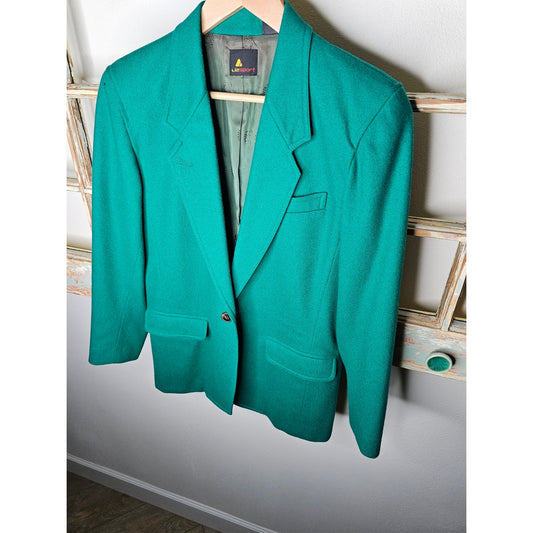Vintage Liz Wear Blazer Green Wool Ladies Button Front with Pockets size 4